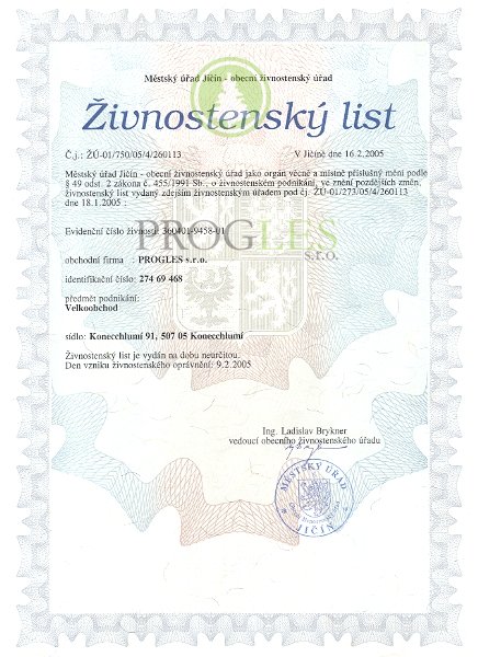 We met the conditions for receiving the ČSN EN ISO 9001:2001 certificate on 18.8.2005.